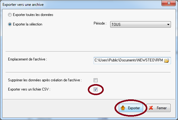 Es ist auch möglich mehrere kleine Archive anzulegen, indem Sie Selektion exportieren, auswählen und die Frequenz definieren.