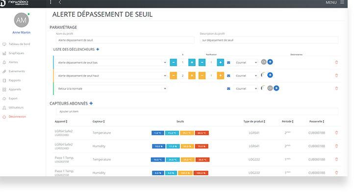 Soluzione thin client; basta connettersi al sito web www.newsteo-webmonitor.com ed effettuare il login. Un avviso può essere inviato in tempo reale al supervisore, ovunque si trovi. Il supervisore può accedere alle misurazioni in qualsiasi momento via Internet.